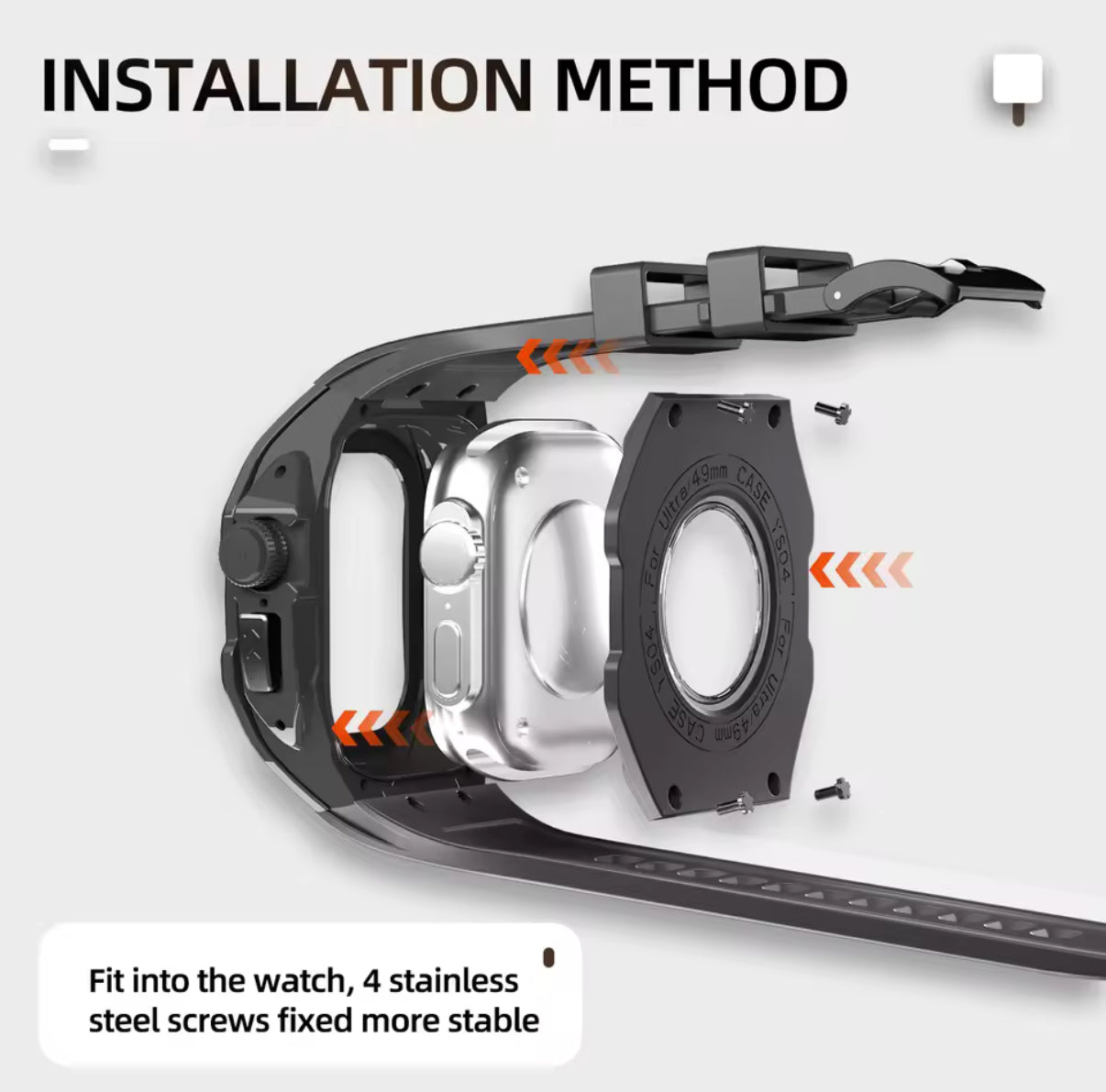KREW - Shellbox IP54 Waterproof Stainless Steel Rugged Watch Case for Apple Watch Ultra 49mm Rubber Silicone WatchBand